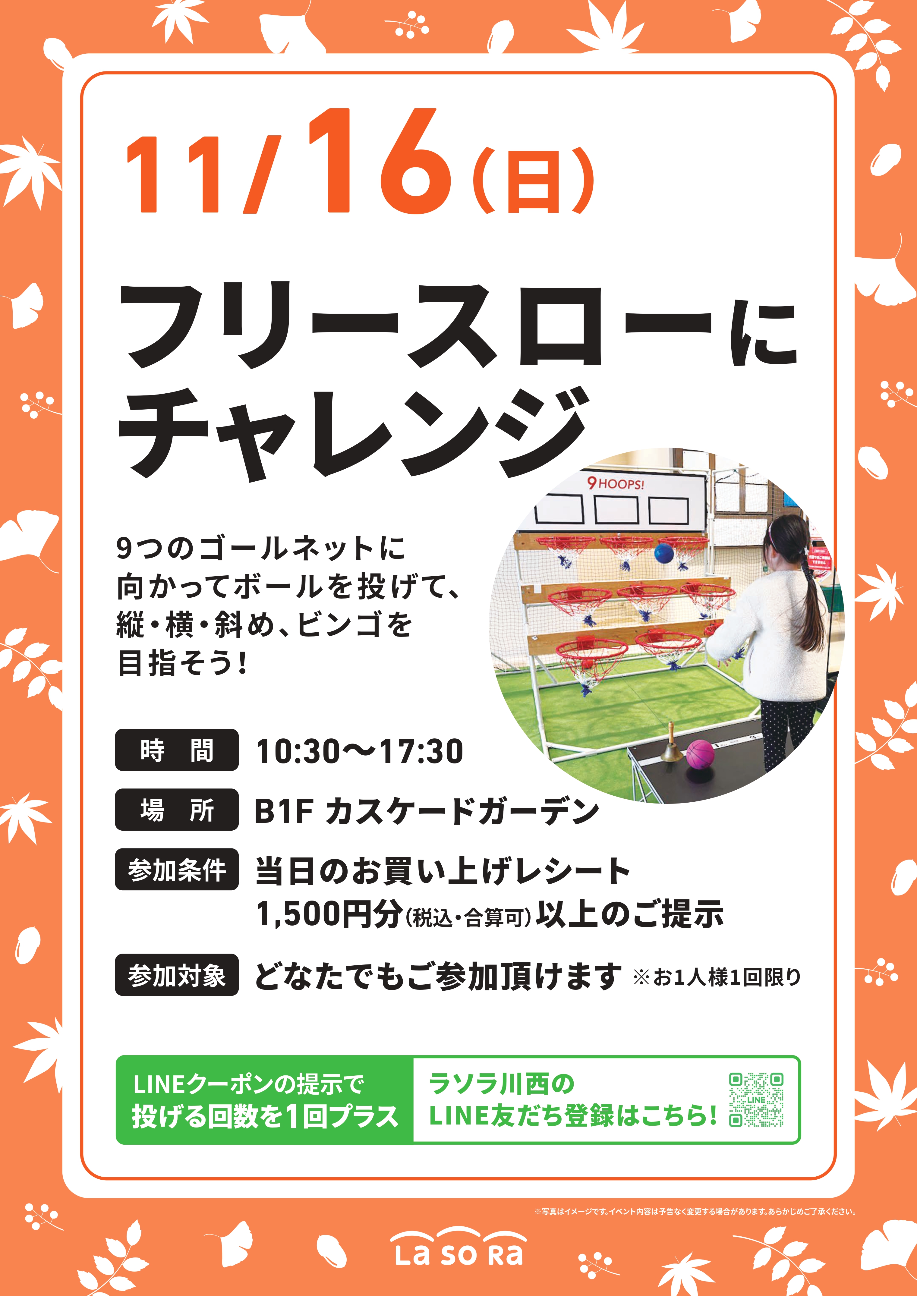 さらに!ラソラ川西のLINE公式アカウントのトーク画面からクーポンを提示で「投げる回数を1回プラス」!
