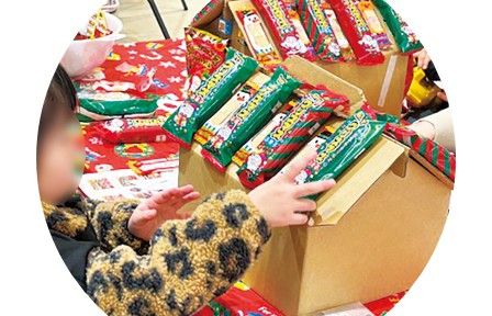 🌟ハウス型のダンボールにクリスマス仕様のお菓子を付けて、お家を作ろう!