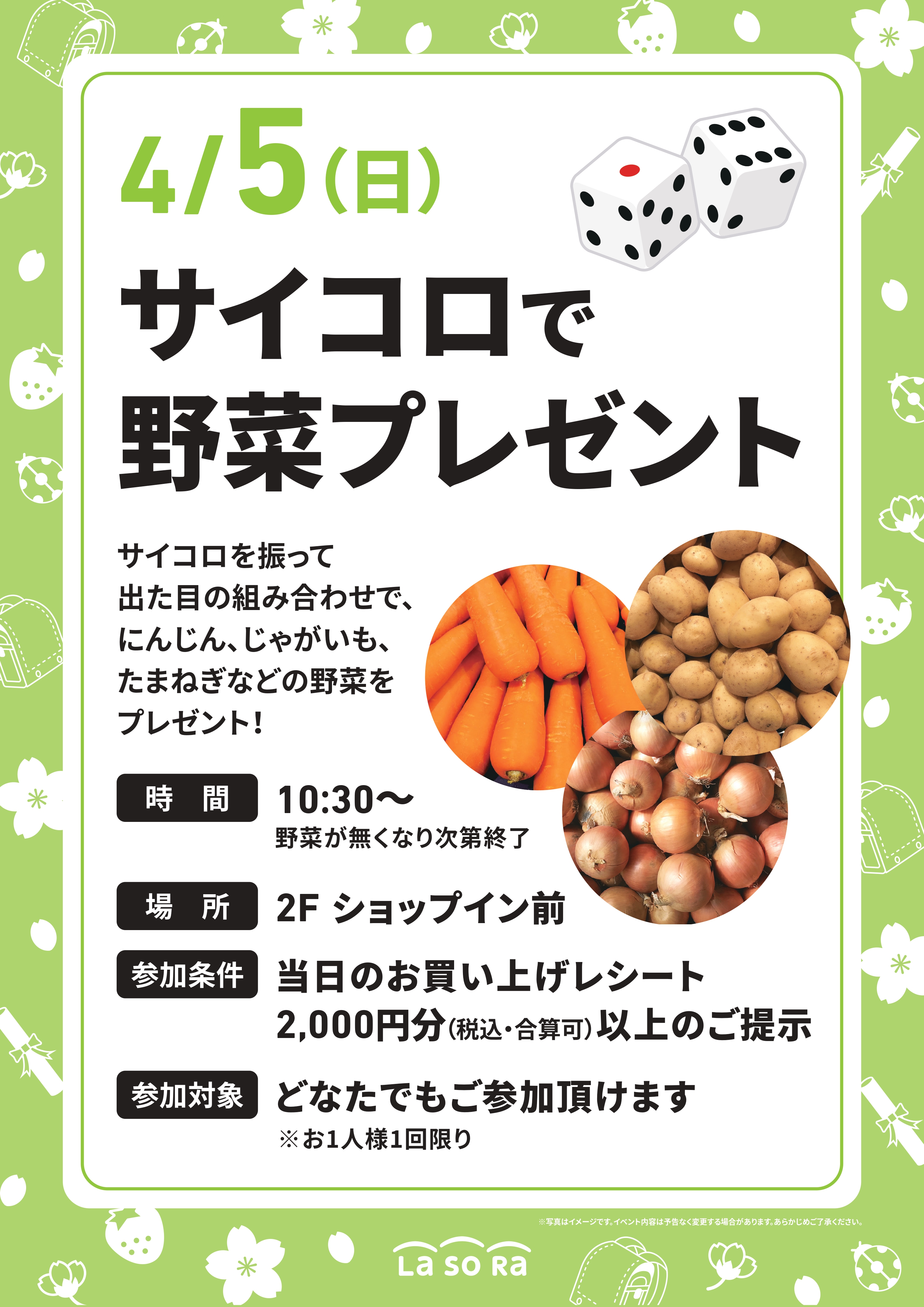 【4/5(日)】🥕サイコロで野菜プレゼント🥔