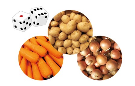 🌟サイコロを振って出た目の組み合わせで、じゃがいも、にんじん、玉ねぎなどの野菜をプレゼント!