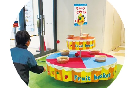 🌟回転するバスケットに、フルーツ型のボールを投げ入れよう!