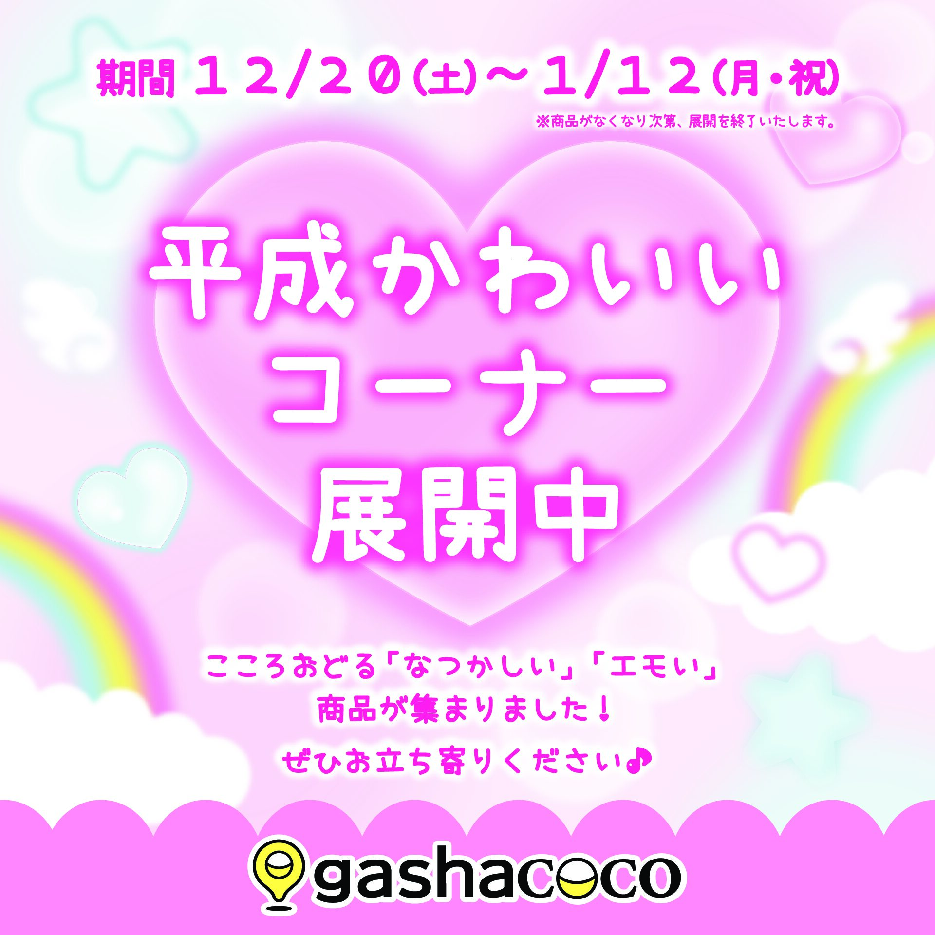 【gashacoco】gashacocoにて、「平成かわいいコーナー」展開中!