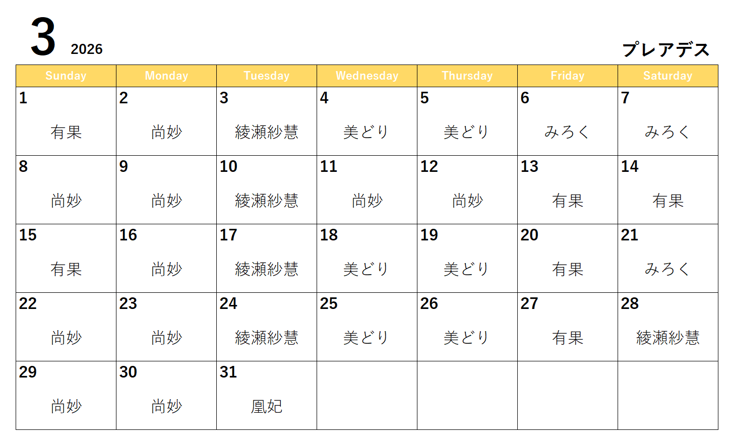 【占いの部屋プレアデス】3月スケジュール